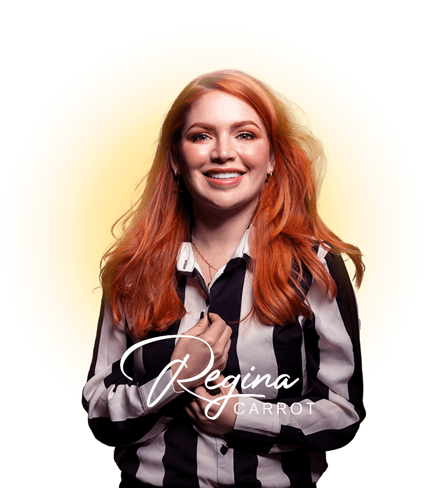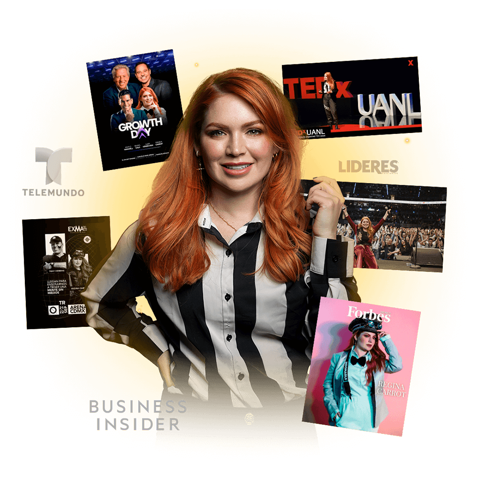Soy Regina Carrot, conferencista internacional, TEDx Speaker, autora de Speaker Master, con +14M seguidores y escenarios compartidos con Tony Robbins, John Maxwell y Grant Cardone.